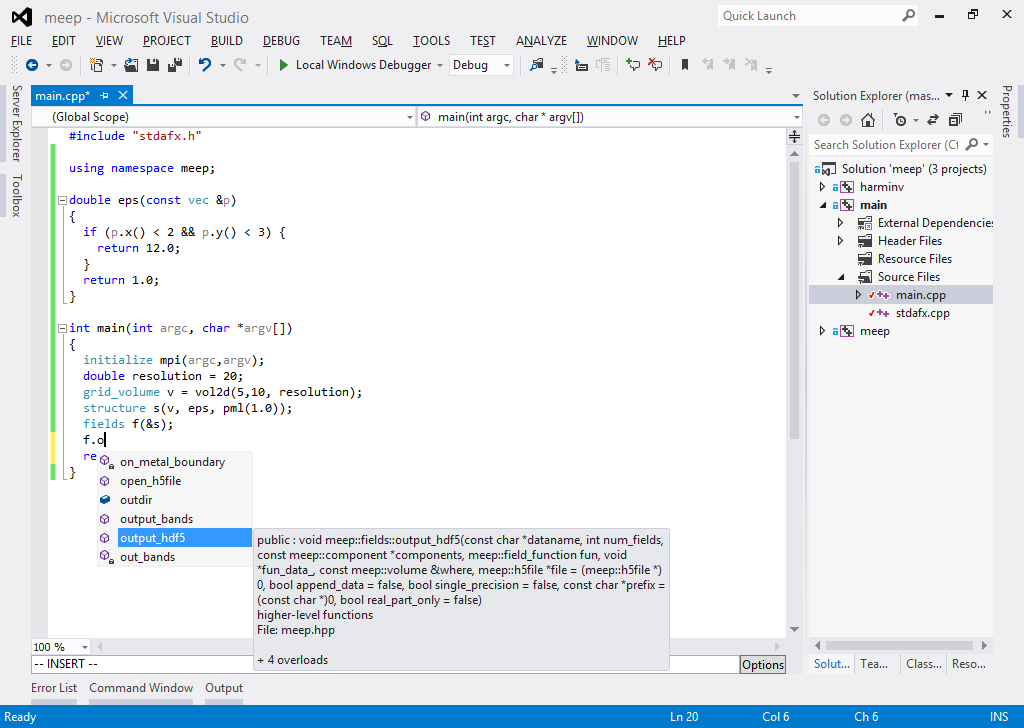 Now, the programs and even the Meep code itself can be developed and debugged within the recent Visual Studio.